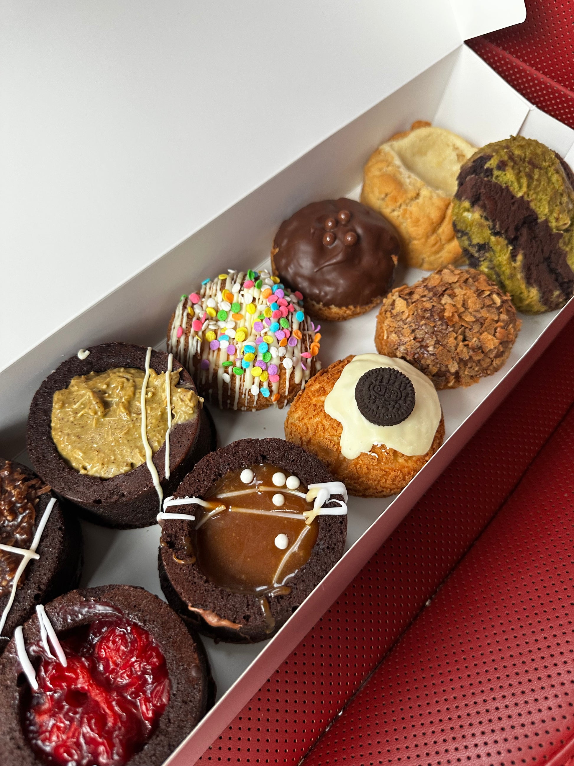 Salted caramel : brownie cup willed with a layer of chocolate ganache and a layer of made in house salted caramel